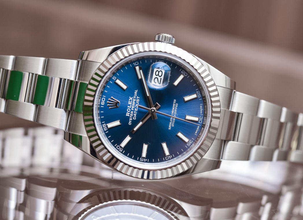 This is clear when looking at several attributes of these watches – price, complexity, and luxurious appeal. The Datejust watch can’t be ordered in solid gold, but only in steel or steel-and-gold combinations. The 41mm range of the Datejust tops at around EUR 18,000, and a classic steel version on a Jubilee bracelet with a fluted white gold bezel (as seen above) is currently priced at EUR 11,150. On the other side of the spectrum is the Day-Date, or the President’s watch, the brand’s most luxurious classic watch. The DD is only available in precious metals (yellow, rose or white gold, and platinum), with a current starting price of EUR 44,200. The model pictured above – white gold, fluted bezel, president bracelet – is priced at EUR 47,600.