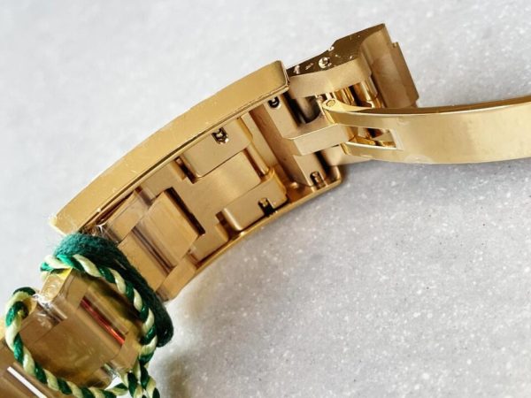 | Strap | 18K Yellow Gold Plated 904L Stainless Steel Bracelet With Perfect SEL, Clasp And Divers Extension And Smooth Screws |
