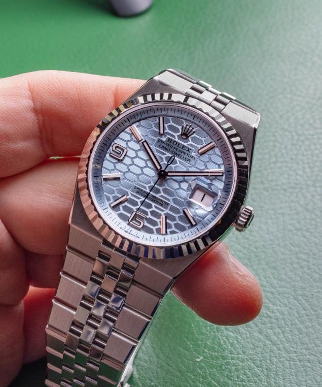 The problem is the sheer brutalist approach to the design and the seemingly unnecessary (or rather, unharmonious) use of the honeycomb-style dial texture. This texture is a call-out to some previous Rolex watch dials, and it is a good idea that Rolex didn’t just offer a flat-polished face. But the Land-Dweller’s face doesn’t look fresh or particularly pretty; it lacks both novelty and elegance, something consumers like to pay for in a luxury timepiece. Rolex can’t be accused of doing the Land-Dweller dial wrong, but it certainly could have made it look more attractive. The models with diamond hour markers are a bit nicer, but overall, the honeycomb dial leaves me cold (it reminds me of a hex-based game board) and with the belief that Rolex will probably keep working on this part of the best copy Rolex Land-Dweller watches product family similar to how it refined models like the Sky-Dweller over time.